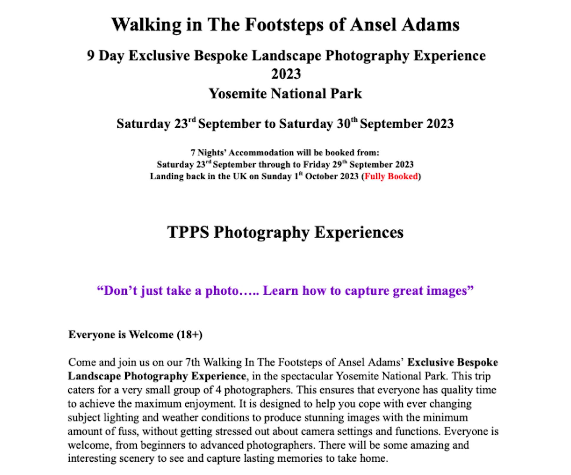 Come and join us on another, ‘Walking In The Footsteps of Ansel Adams’